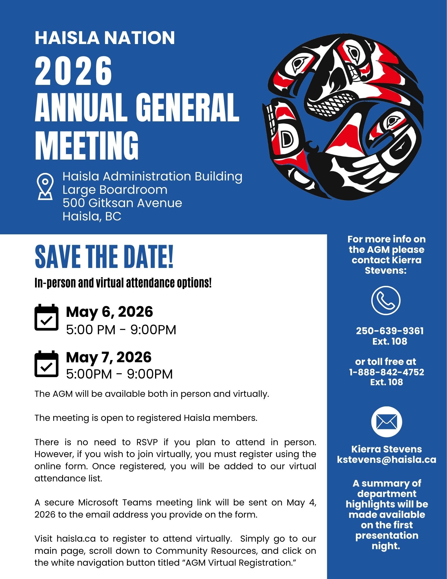 The Haisla Nation Organization is the band government of the Haisla people. Our mission is to build a powerful, prosperous and proud community, healthy in mind, body and spirit.