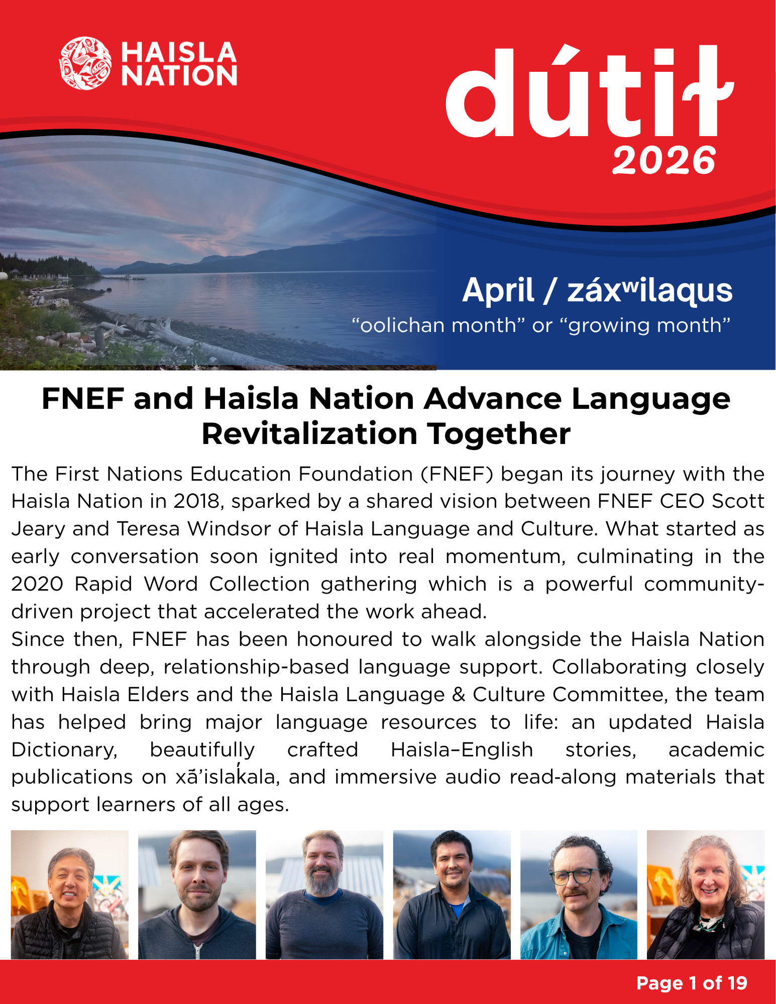 Each month, Haisla Nation releases the dútiɫ, a newsletter filled with updates, stories, and announcements. It’s your go-to source for: