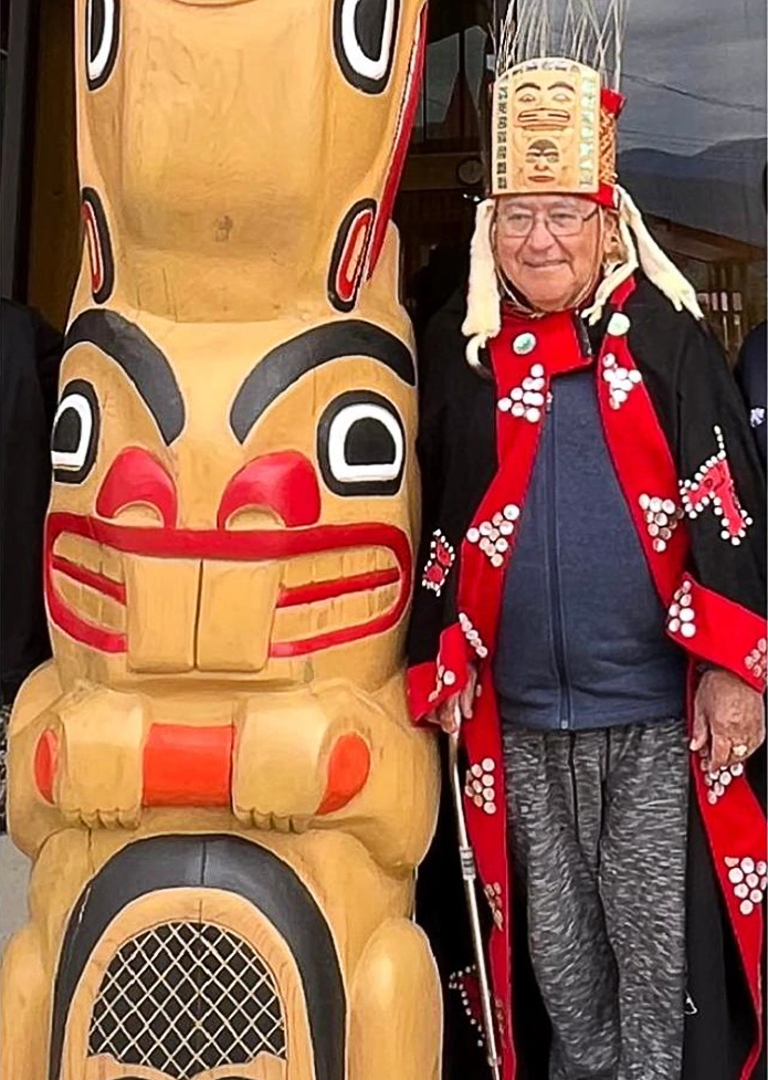 Despite these obstacles, the x̄á’isla have continued to assert their rights, revitalize their culture, and contribute meaningfully to politics, literature, the arts, and music. One such figure was the late Sam Robinson, Hereditary Leader and world-renowned artist. He was first recognized in 1963 when he received the First Nations Art Award at the Pacific National Exhibition in Vancouver. His work soon gained international recognition, leading to his role as a special carving dignitary at Expo 1967 in Montreal and as a resident carver during the 1970 Olympic Games. In 2013, he was honoured with the BC Achievement Foundation’s Fulmer Award for First Nations Art, a testament to his lifelong dedication to Indigenous expression and excellence.