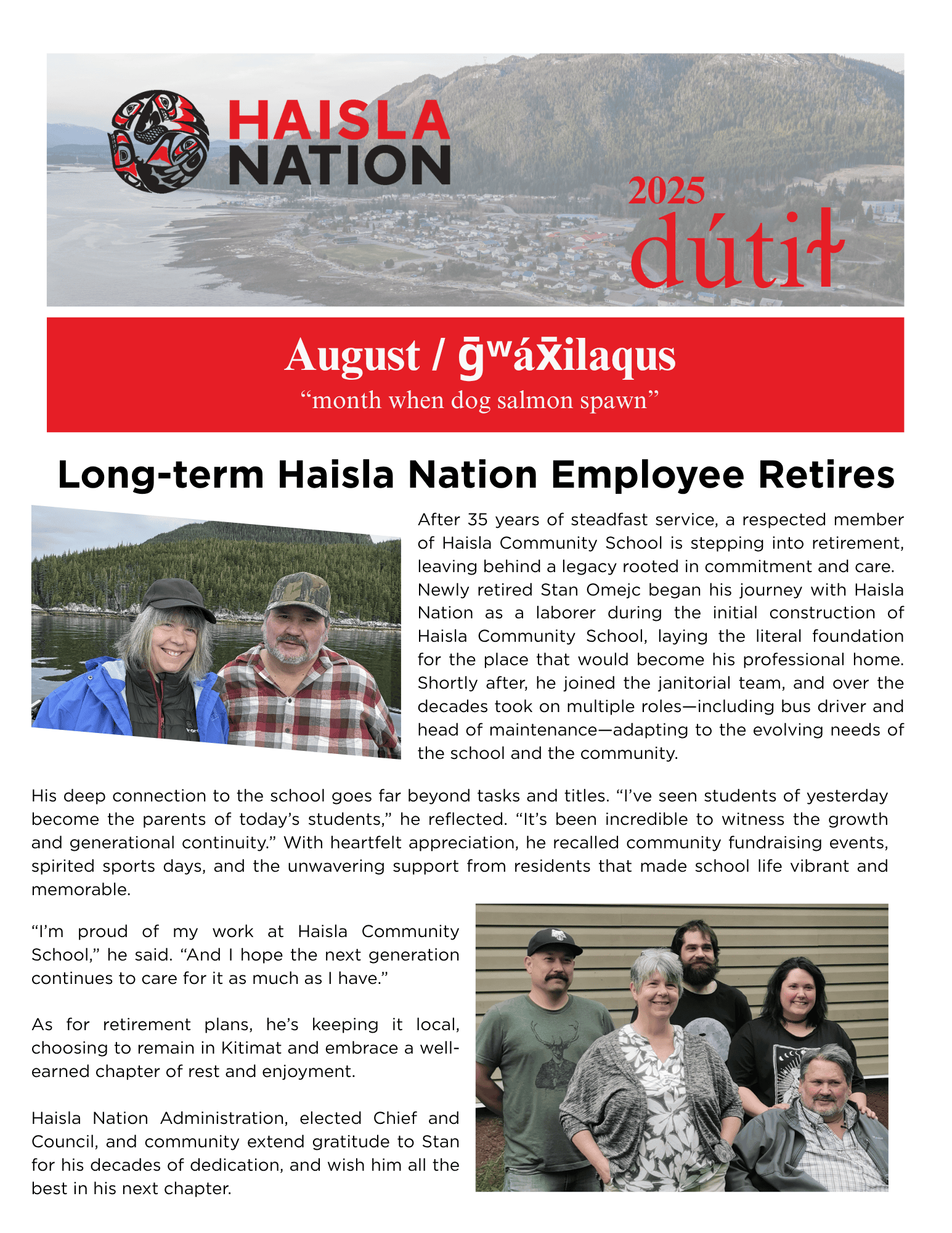 Congratulations to the newly elected Chief and Council of Haisla Nation.