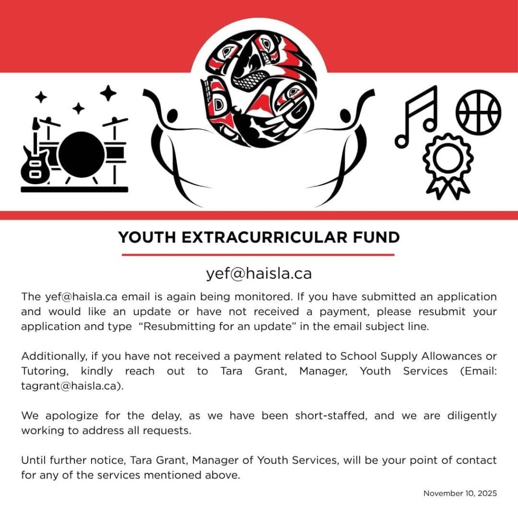 Haisla Youth Services is pleased to provide an update regarding the: